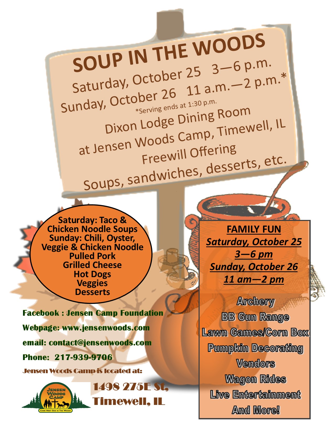 Soup in the Woods is back, and you’re invited for a weekend of delicious food and family fun at Jensen Woods Camp in Timewell, IL!